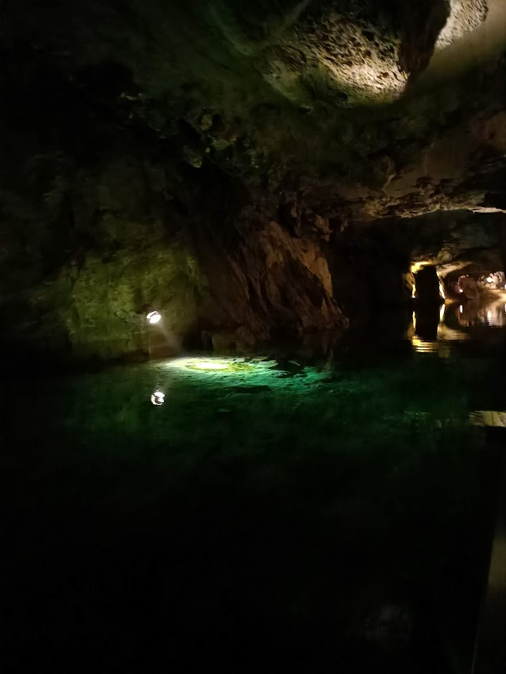 其中一個昏暗的石窟裡有固定的聲光秀展演,一個人站在裡面,感受著聲光效果,再搭配洞穴裡充斥的回聲和河流聲,非常震撼。