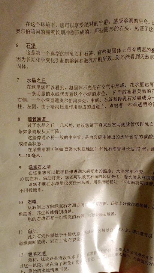 石灰岩洞沒甚麼光線,五感皆被放大,站在暗河上的半鏤空步道上真的有點可怕,耳邊能清楚聽見湍急的河水聲。